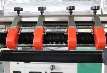 5.自動(dòng)送料,制袋長度由電眼和計(jì)時(shí)器的組合自動(dòng)控制;配有廢料感應(yīng)電機(jī),可自動(dòng)卷取廢邊。